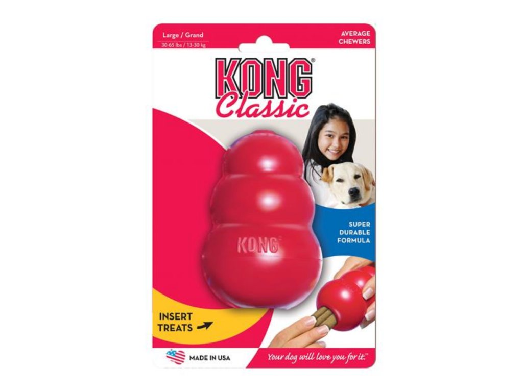 KONG Classic je zlatý štandard hračky pre psy a už 40 rokov predstavuje základnú hračku pre psy na celom svete. Ponúka obohatenie, uspokojuje inštinktívne potreby psa, jedinečné zloženie prírodnej červenej gumy KONG Classic je ultra-odolné, hračka nepredvídateľne skáče a je ideálna pre psy, ktoré rady žujú a tiež spĺňa potrebu psa hrať sa. Chcete čas strávený hrou ešte predĺžiť? Naplňte chutnými granulami a navnaďte psa troškou arašidového masla. K zábave prispejete tiež pochúťkami KONG Snacks™ a troškou KONG Easy Treat™.