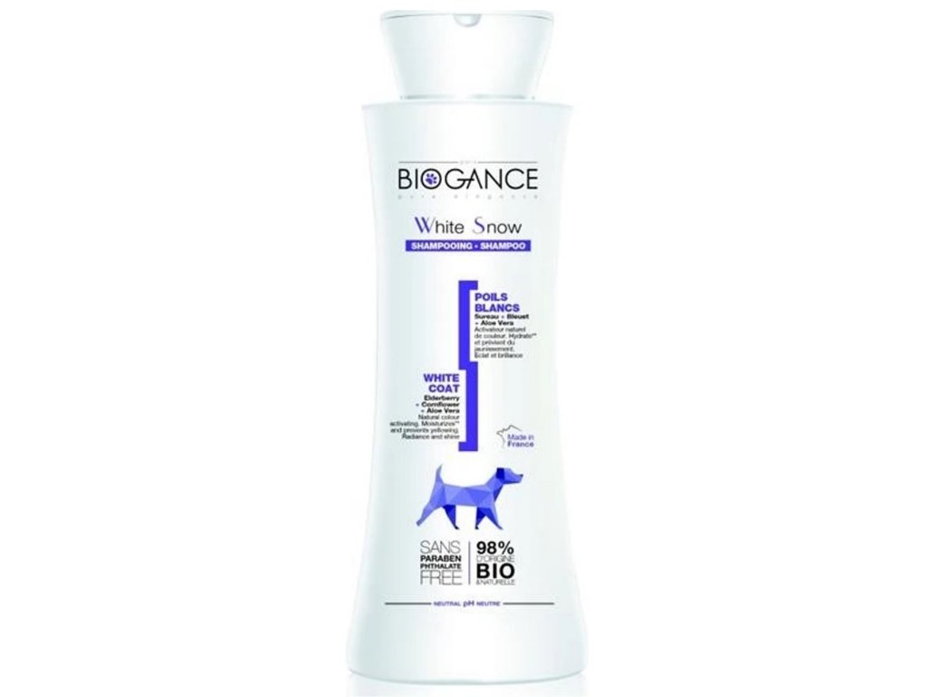 Obsahuje bioaktívne látky, bez parabénov. Výťažky z bazy a nevädze zabezpečujú jemné čistenie, ošetrenie a obnovu prirodzeného sfarbenia srsti. Šampón pomáha predchádzať zažltnutiu srsti. Vyvážené pH pre svetlé a biele odtiene srsti.